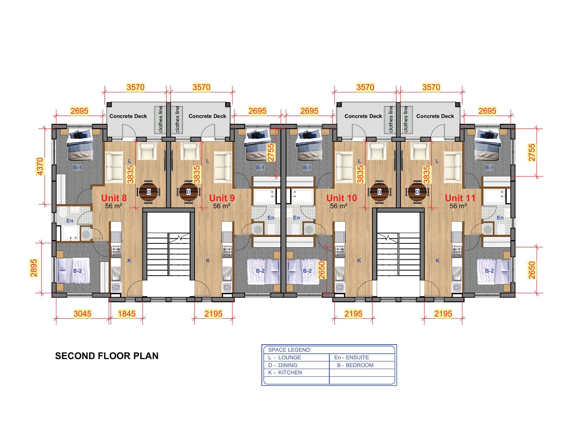 Each of these properties' walk-up residences offers two bedrooms and one bathroom along with a spacious and open-plan living area. Perfectly crafted for the modern life, the light-filled interior spills out to a balcony where you can entertain guests, cook on the barbeque or relax with your morning coffee and admire the peaceful surrounds. The homes are spread over three levels with the ground-floor units opening to an outdoor space while each residence also comes with a single carpark.